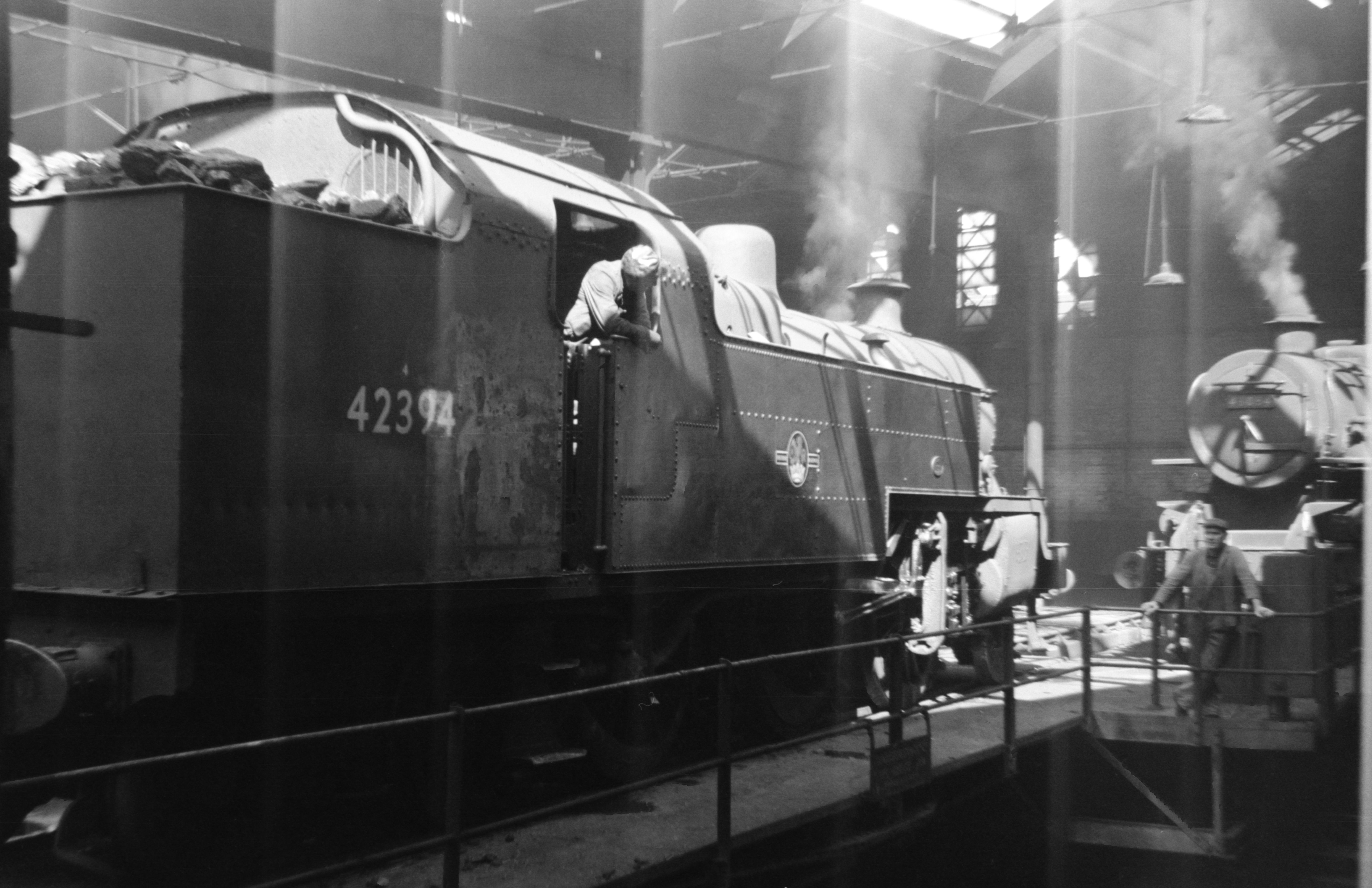 Fowler 2-6-4T 4MT 42394 on turntable inside shed