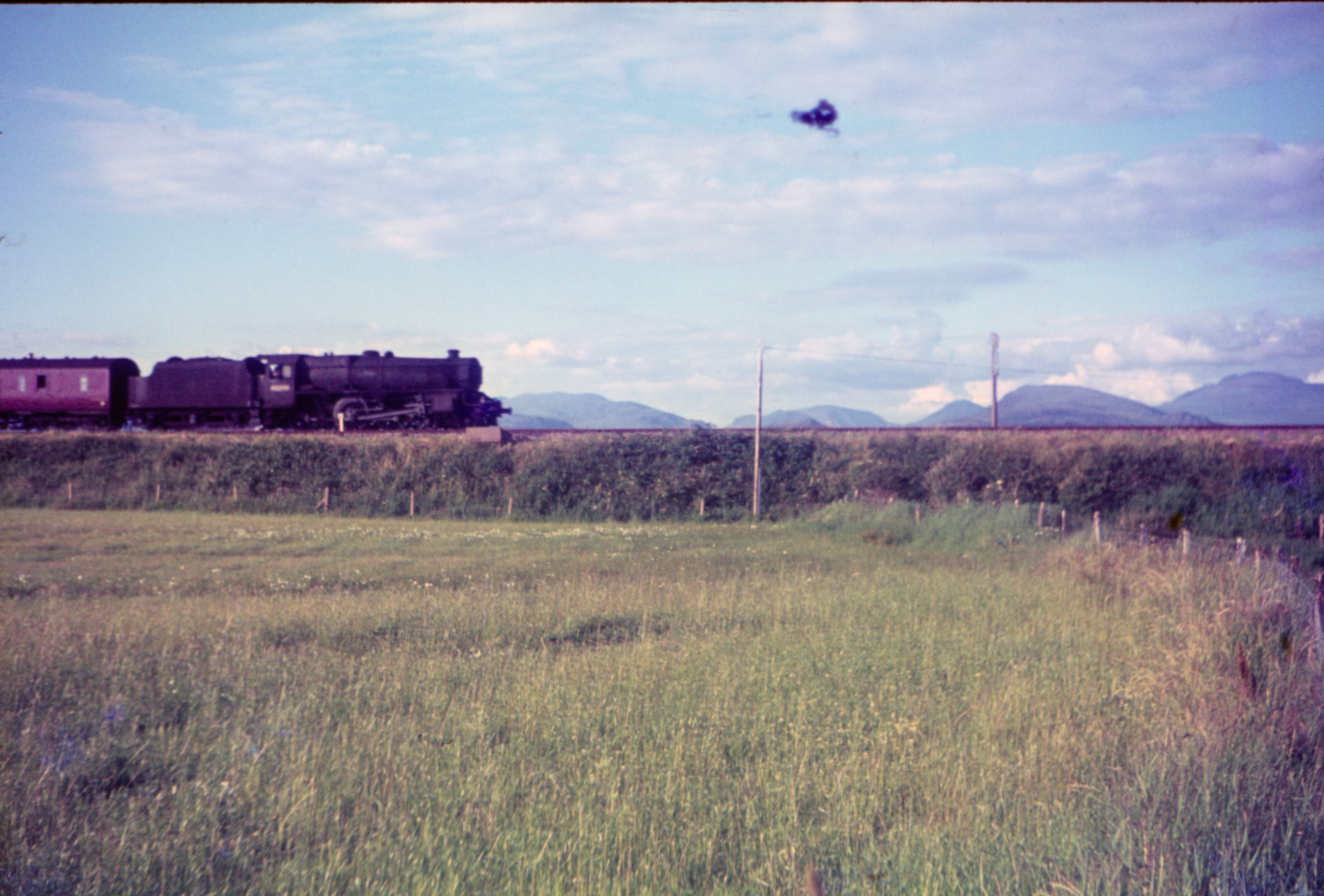 Stanier 4-6-0 5MT Northbound empty coal hoppers at Seascale
