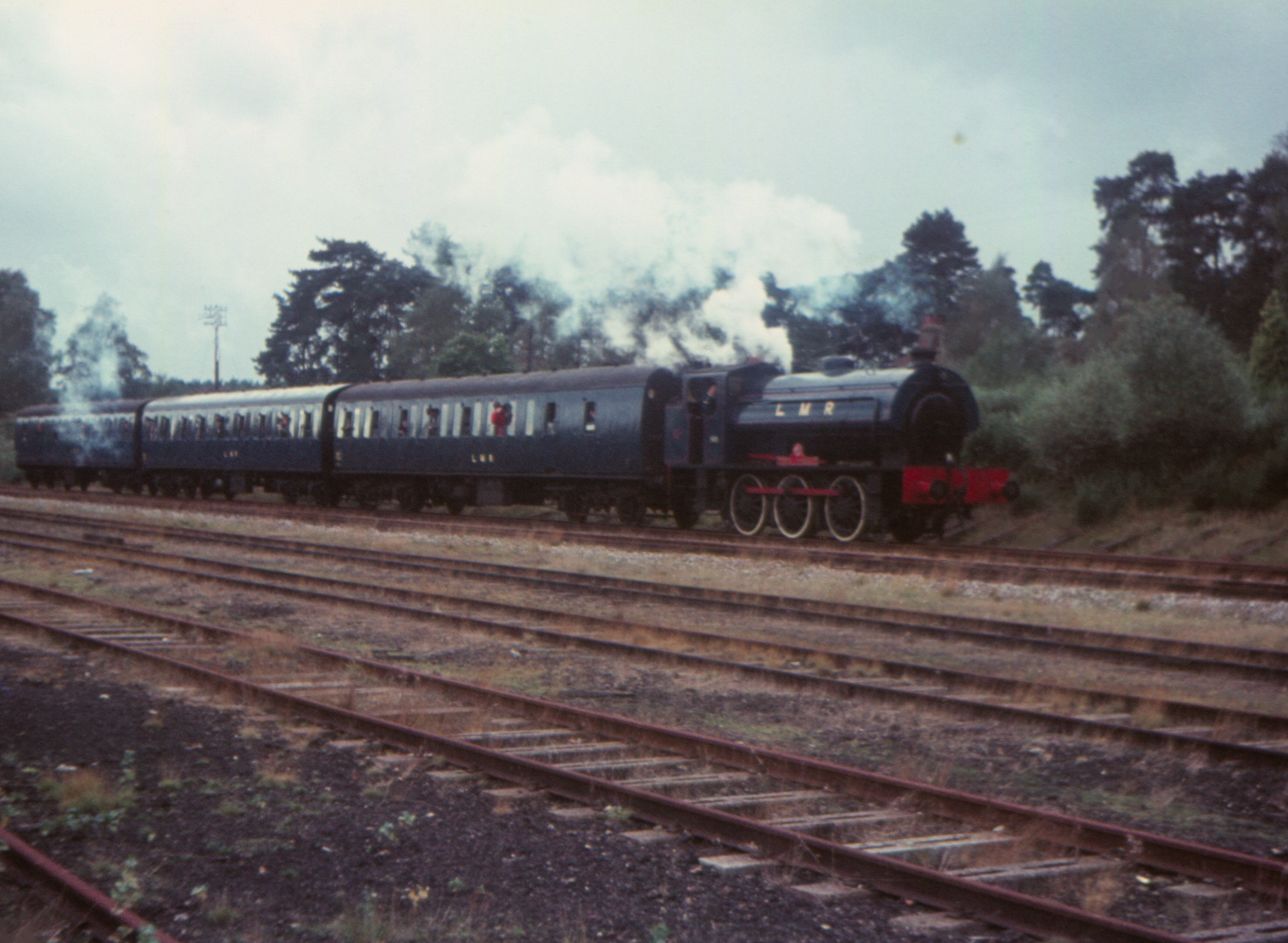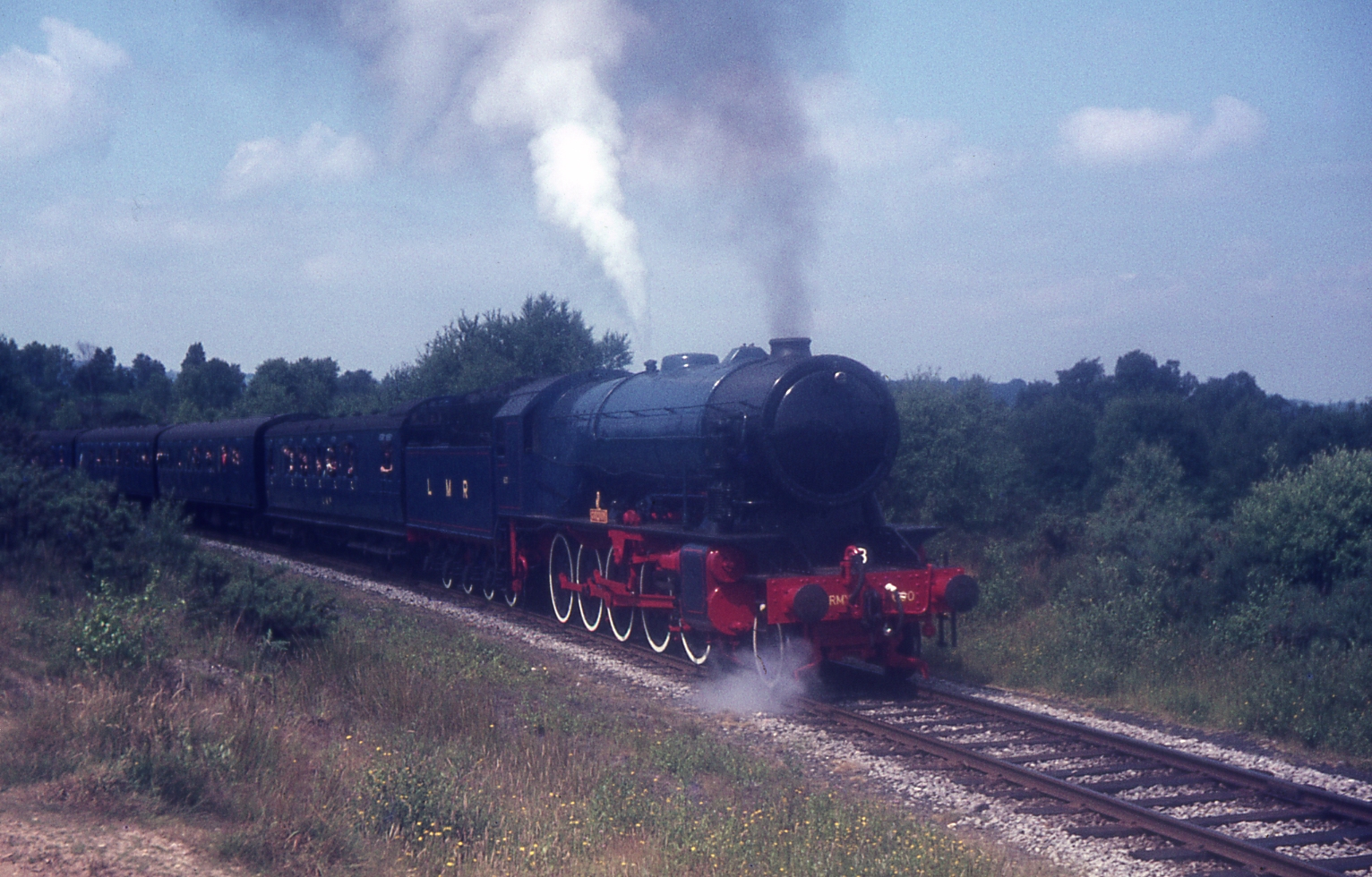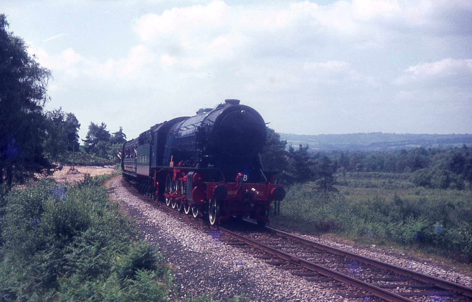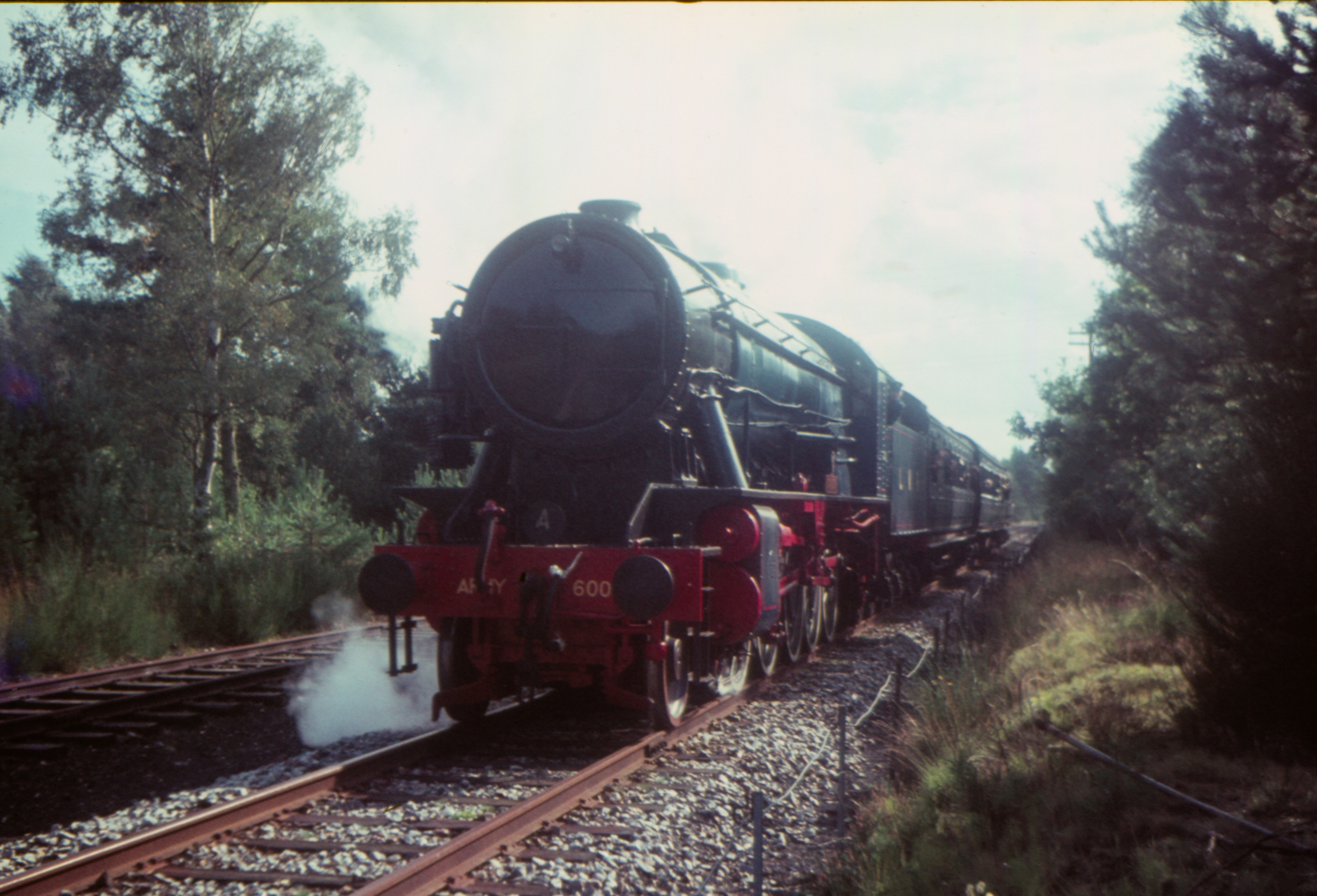 WD 2-10-0 8F 600 "Gordon" Oakhanger to Longmoor Downs passenger between Two Range Halt & Oakhanger