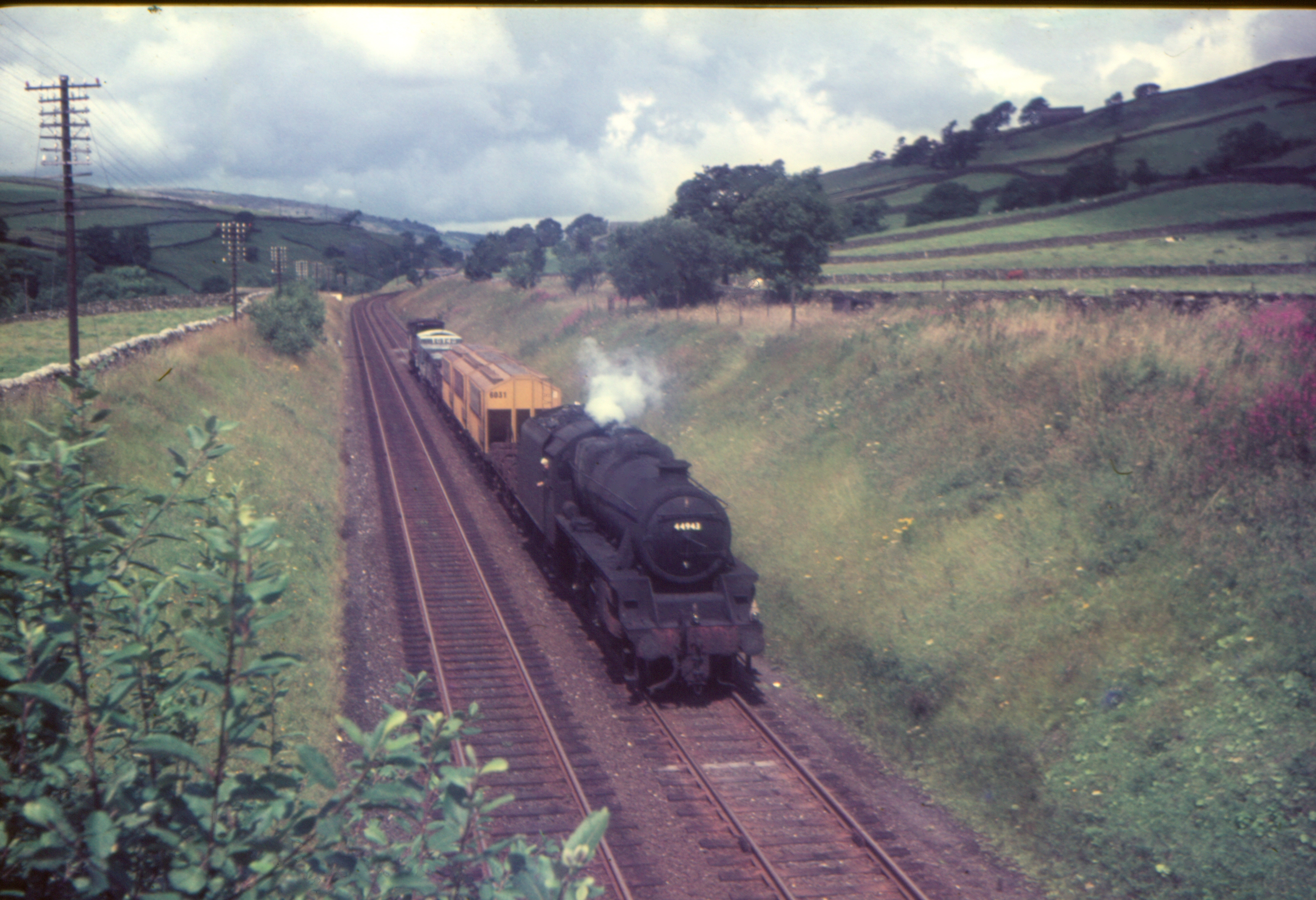 Stanier 4-6-0 5MT 44943 Southbound freight at Dog Hill Brow Stainforth