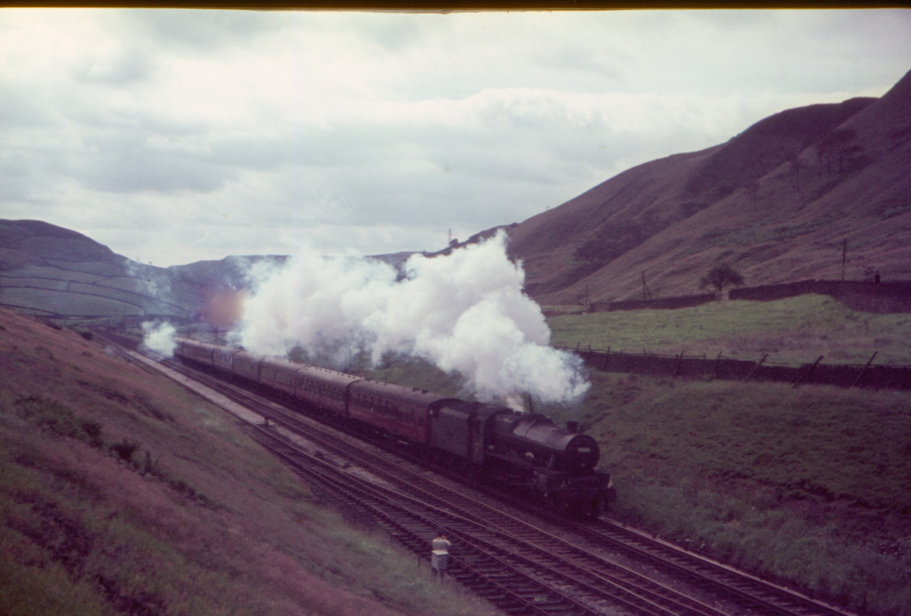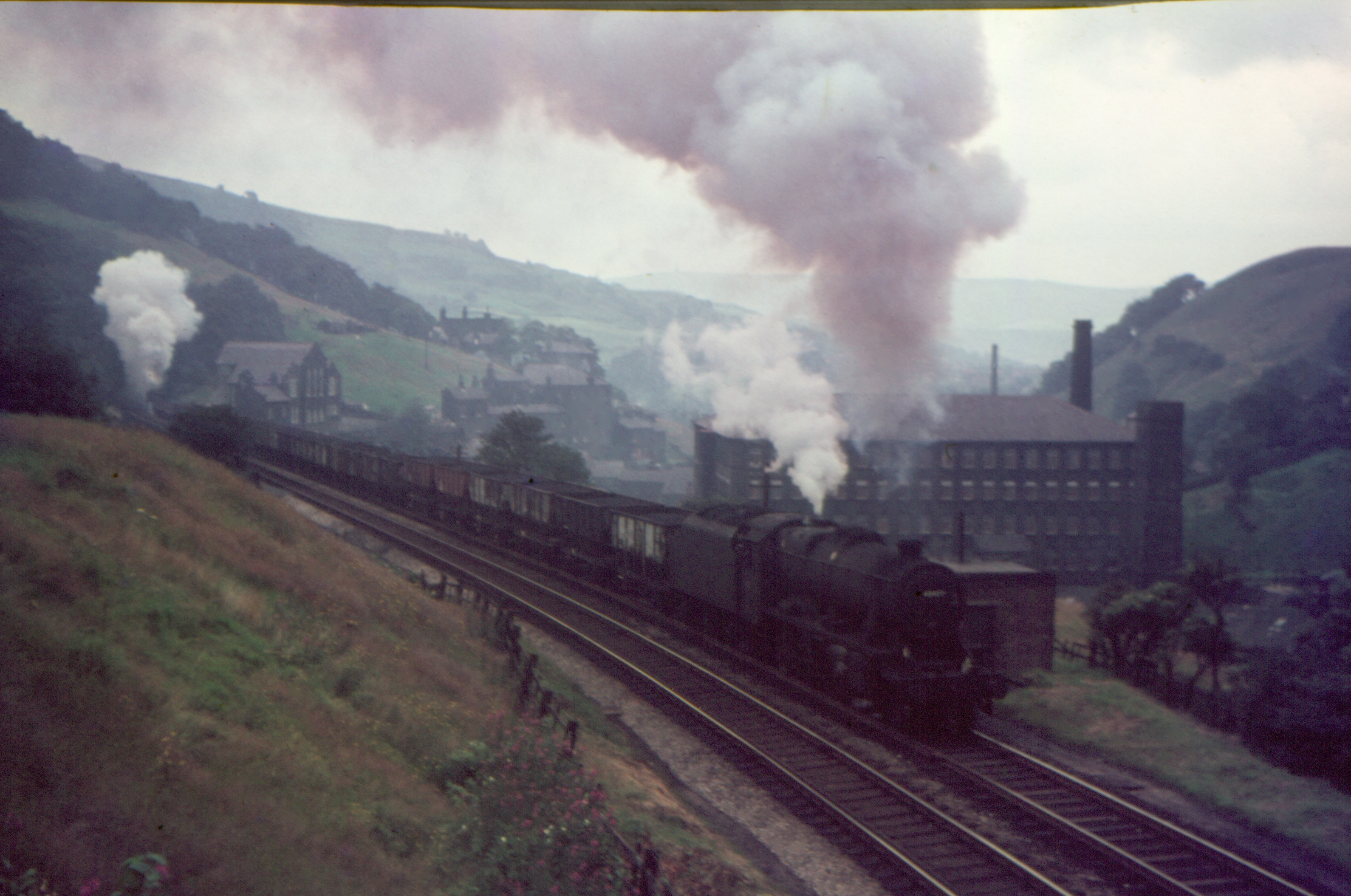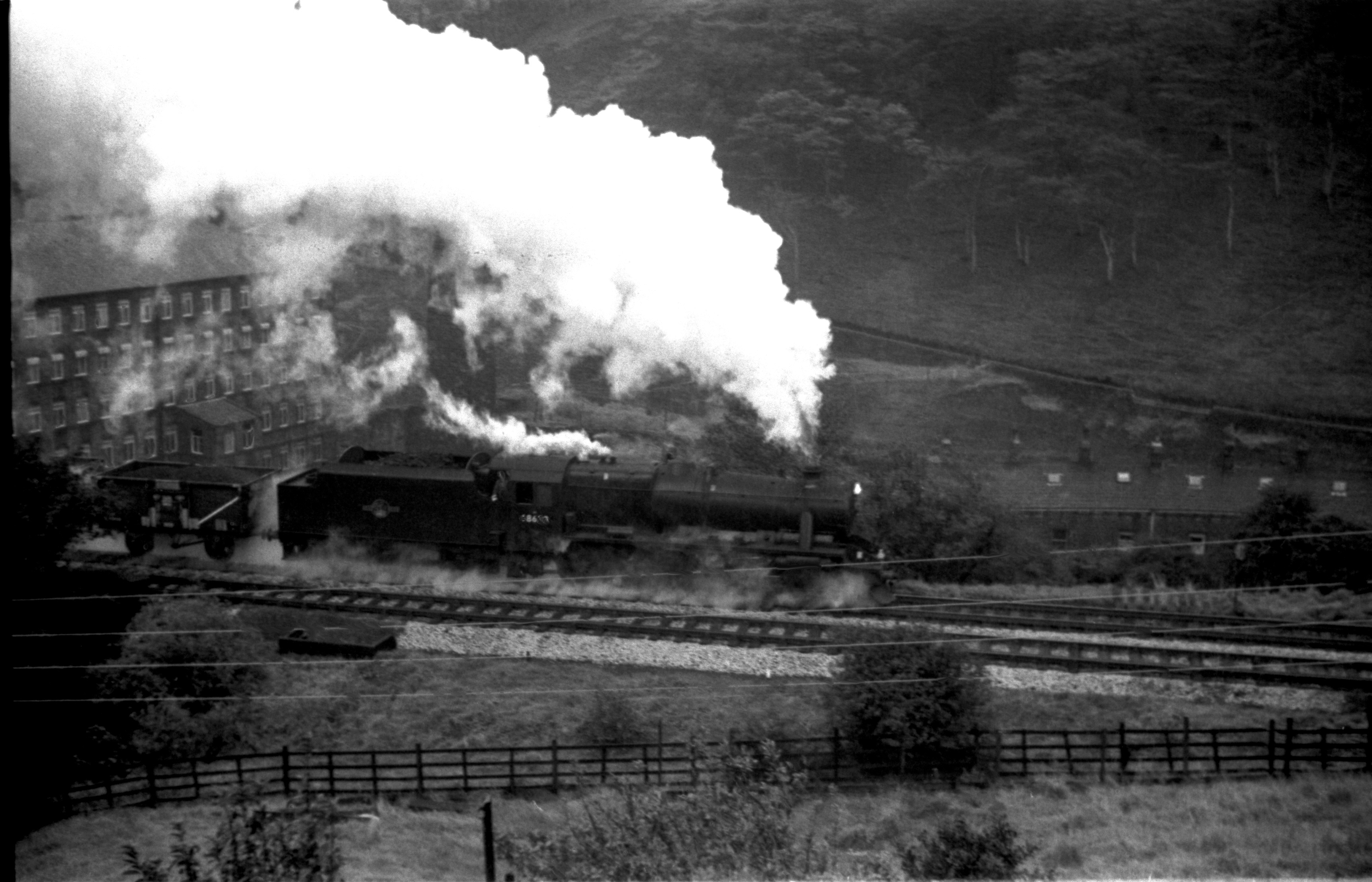 Stanier 4-6-0 5MT 45336 & Hughes 2-6-0 5MT (Crab) 42942 Approaching Cornholme with 1X50 Crab Railtour from/to Liverpool via Manchester, Wakefield & Goole 8th Oct.1966