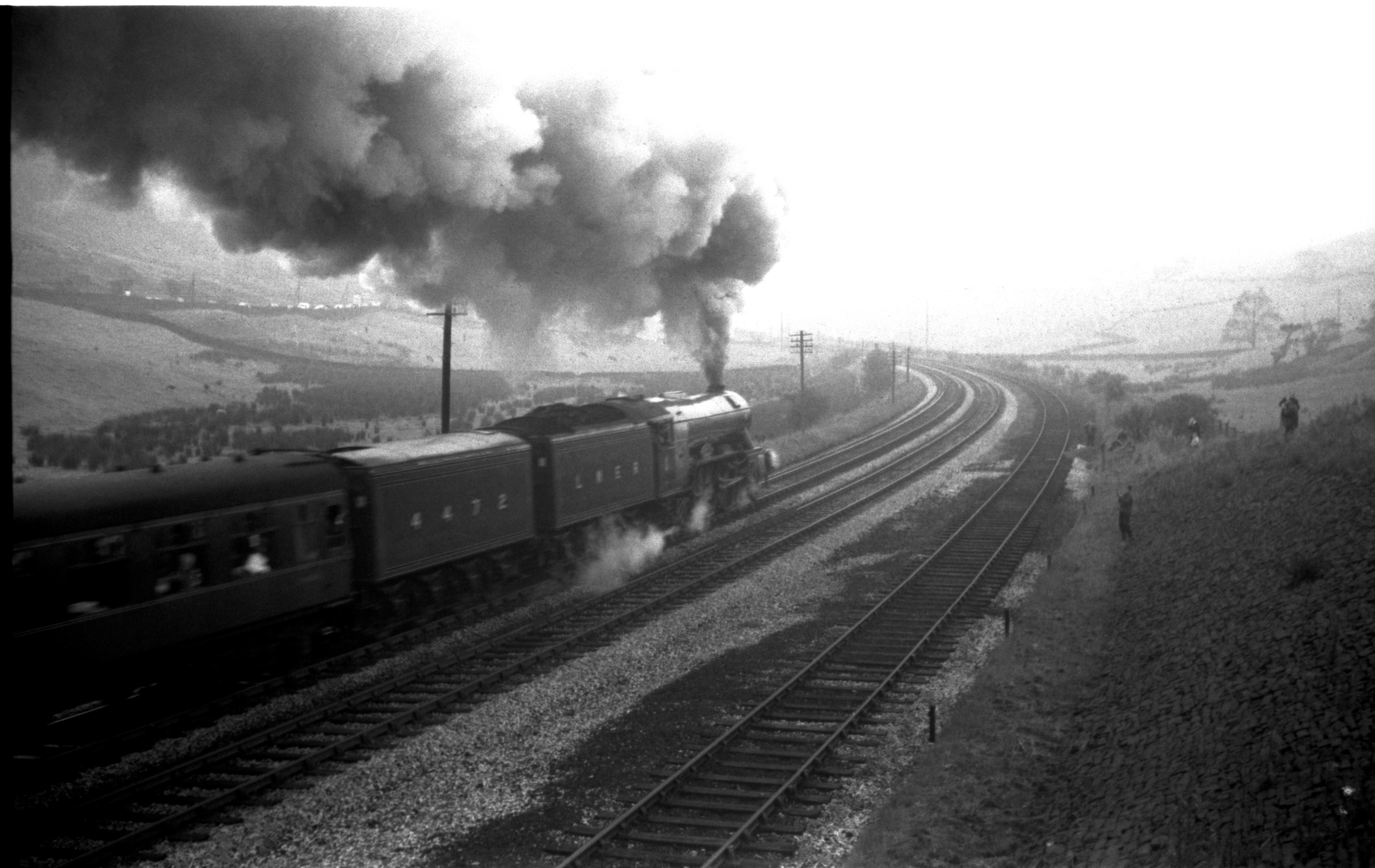 Gresley A3 4-6-2 7P6F 4472 "Flying Scotsman" Heads for Copy Pit summit shortly after passing Cornholme with 1X06 Blackpool Belle from Lincoln to Blackpool North 8th Oct.1966