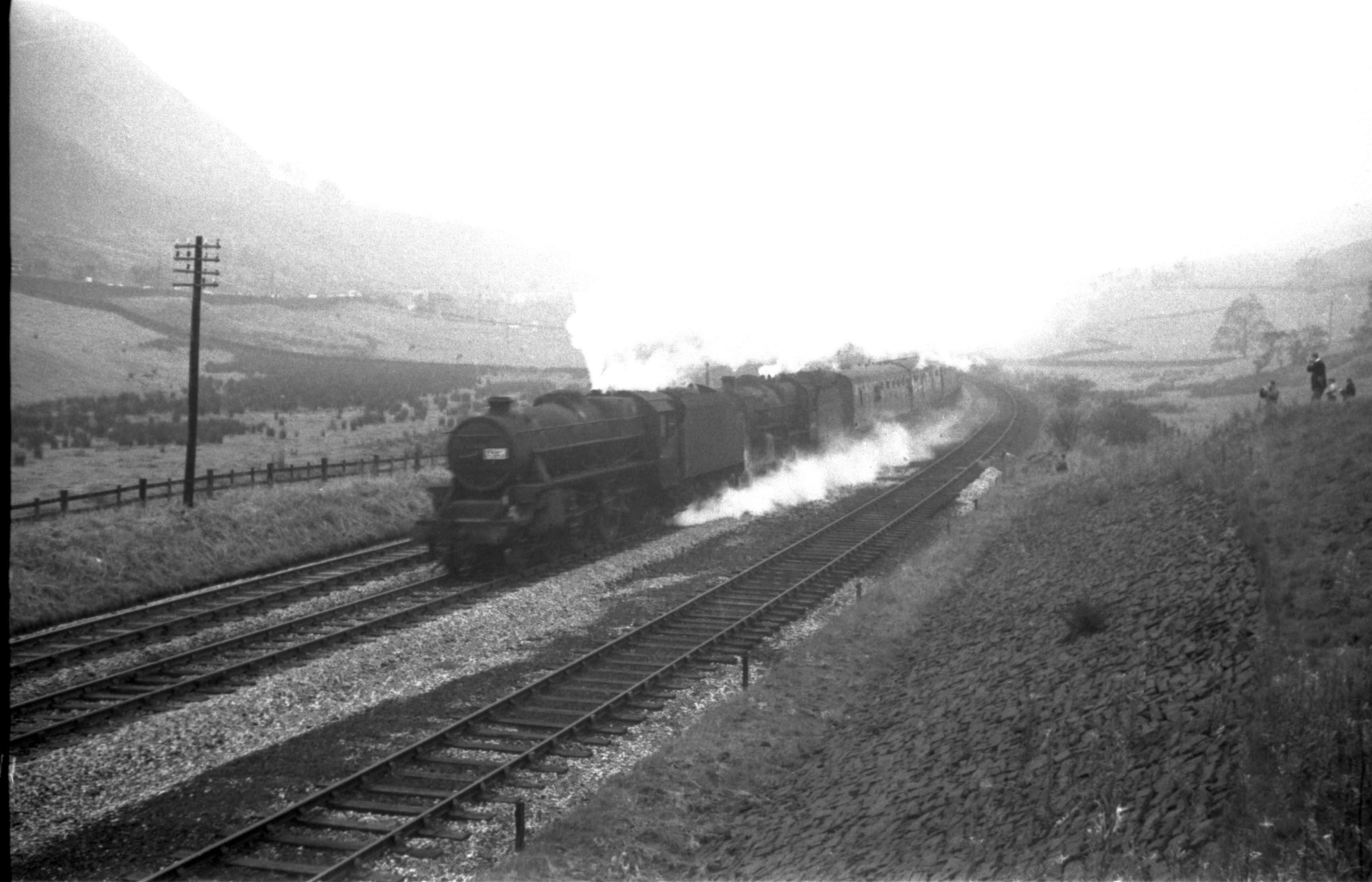 Stanier 4-6-0 5MT/BR Standard 4-6-0 5MT 44949/73069 Double head 1L66 Warwickshire Railway Society North Western Steam tour Stockport Edgeley to Preston via Todmorden & Blackburn over Lydgate viaduct 18th May 1968