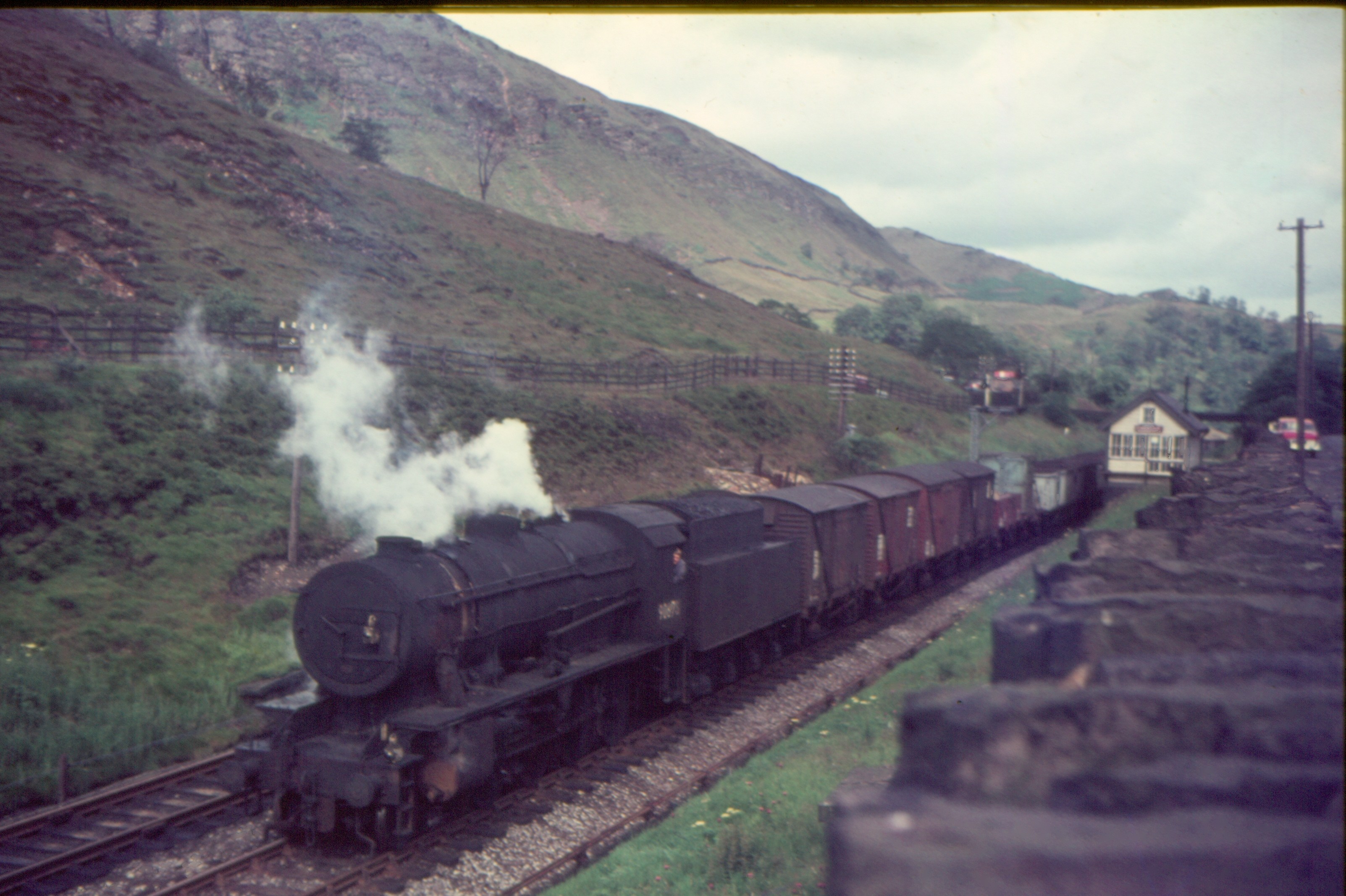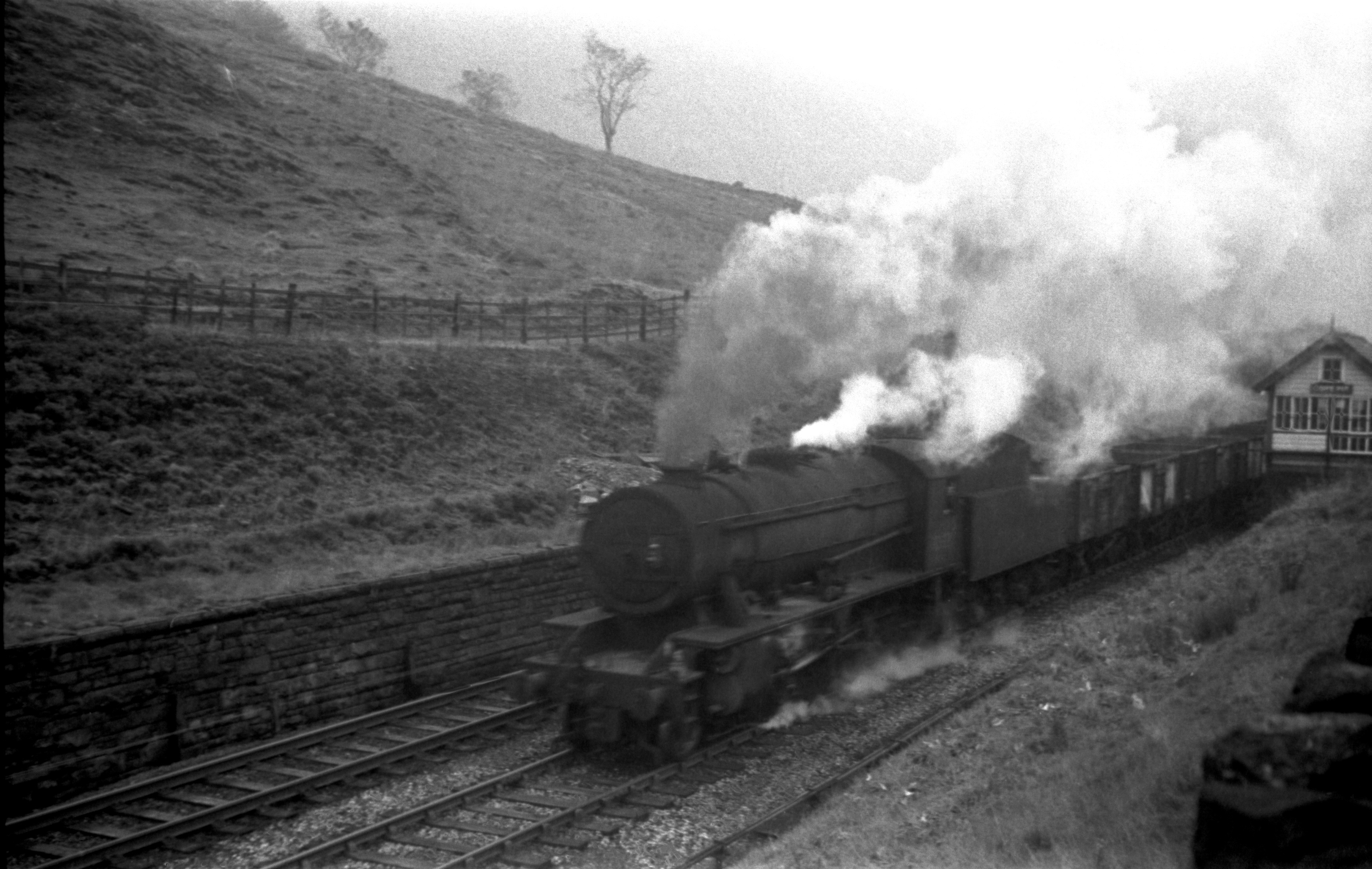 Stanier 2-8-0 8F 48723 Southbound freight approaching Stansfield Hall Junction 31st May 1968