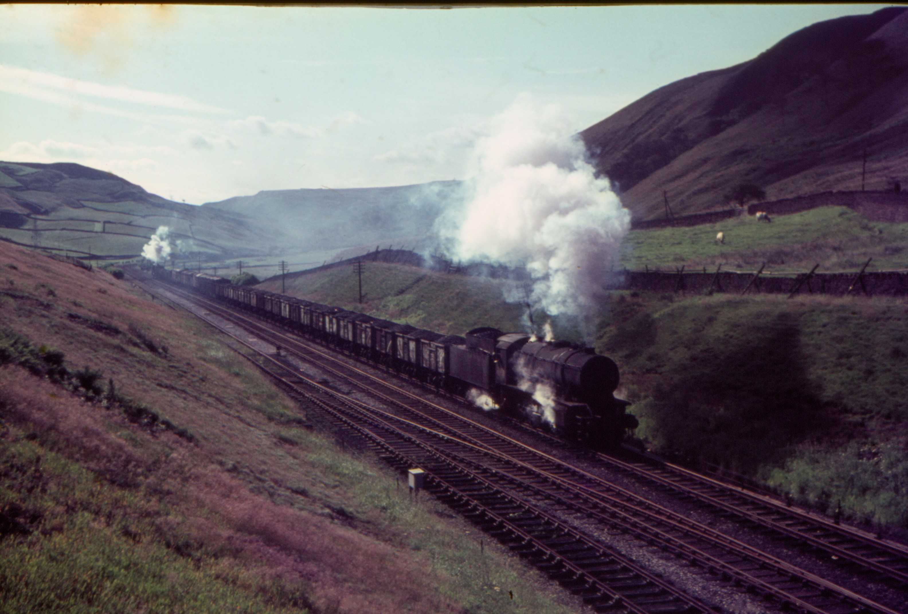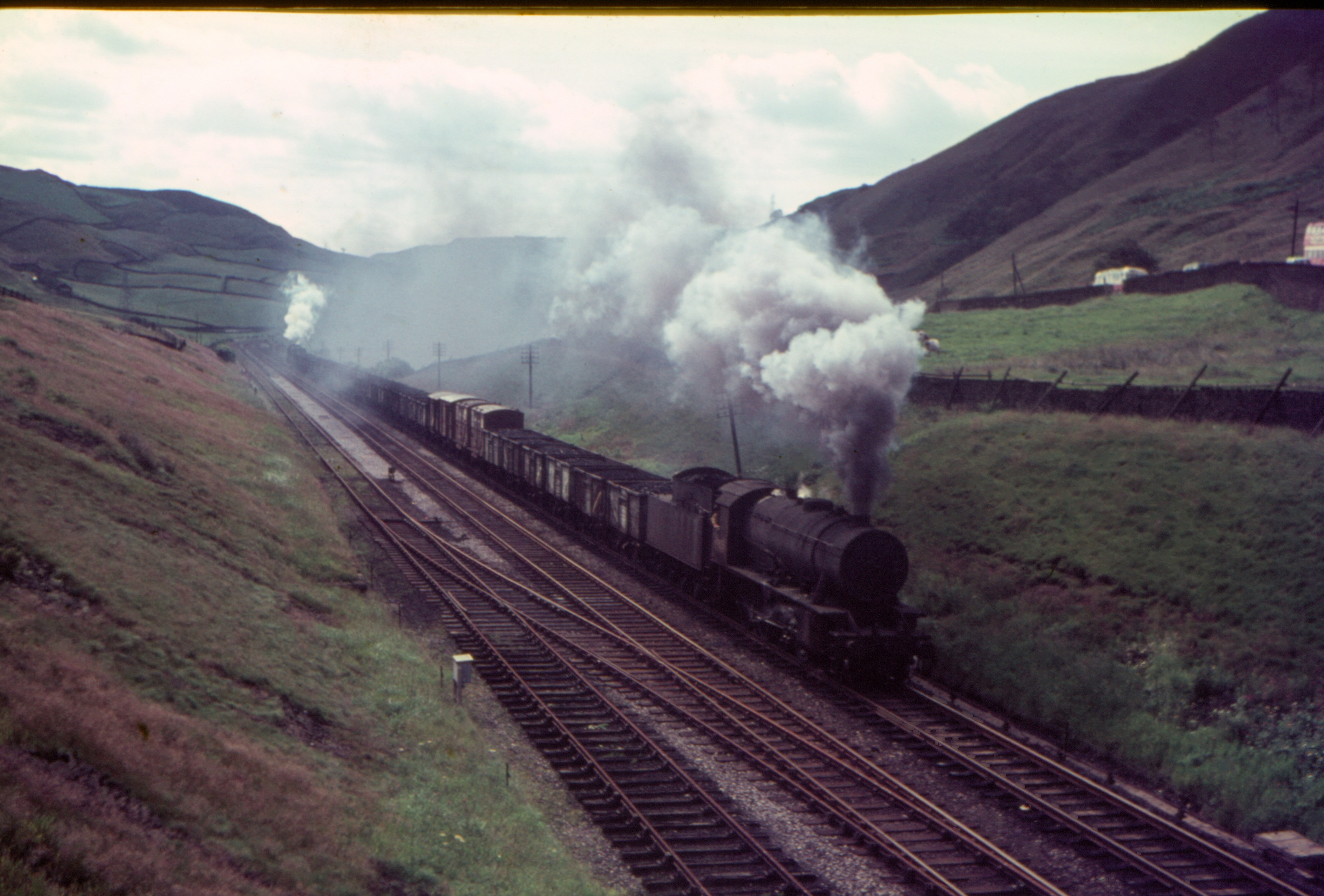 Stanier 2-8-0 8F’s 48519 & 48191 Banking Northbound freight at Lydgate viaduct 18th May 1968