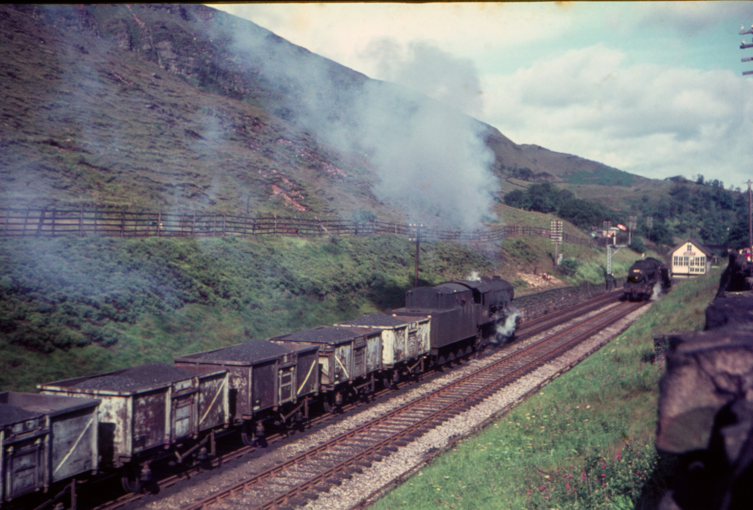 Stanier 2-8-0 8F 48519 Banker on rear of loaded coal for Burnley power station at Lydgate 18th May 1968