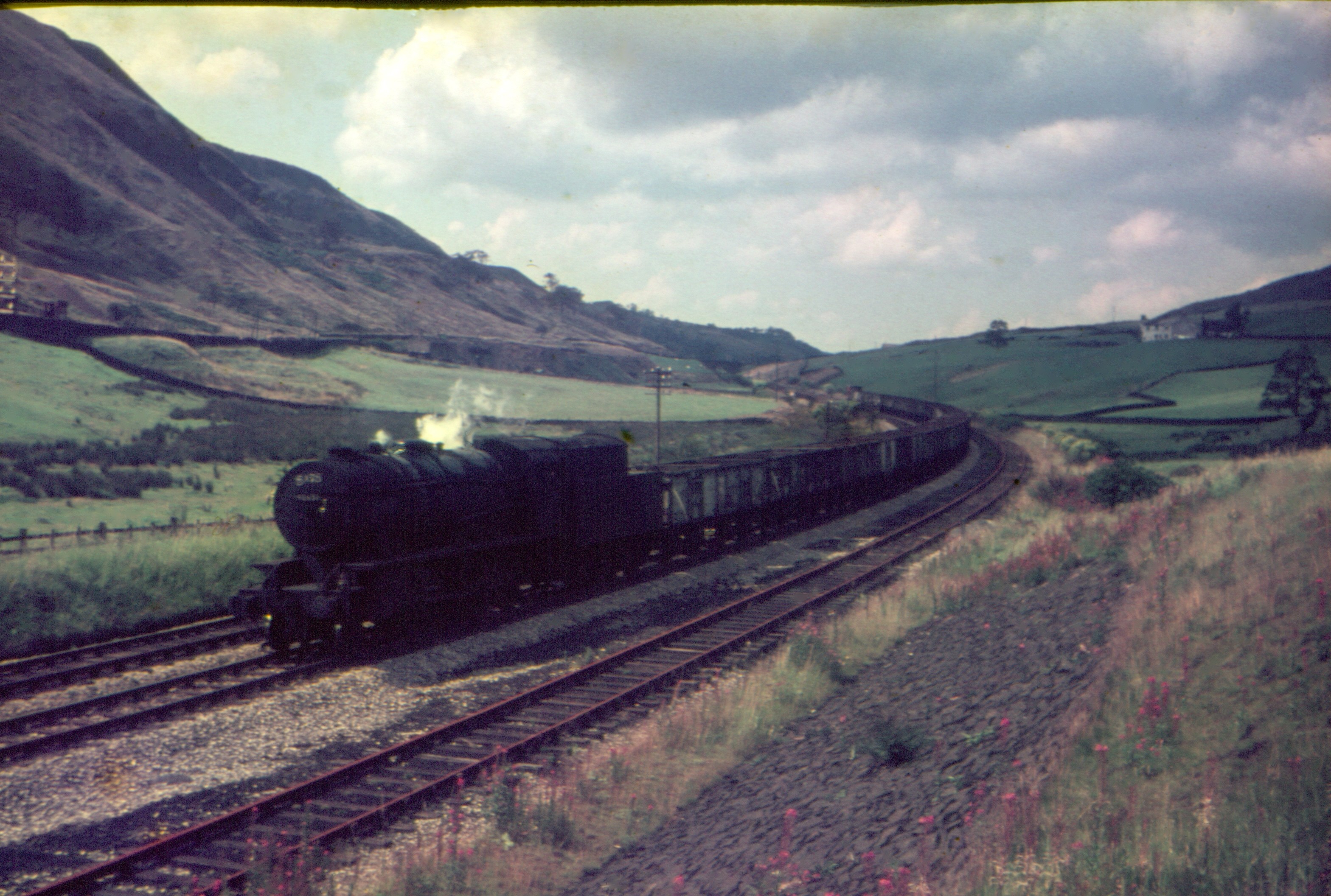 Stanier 2-8-0 8F 48435 Passes Lydgate with northbound loaded coal for Burnley power station 26th Aug.1966