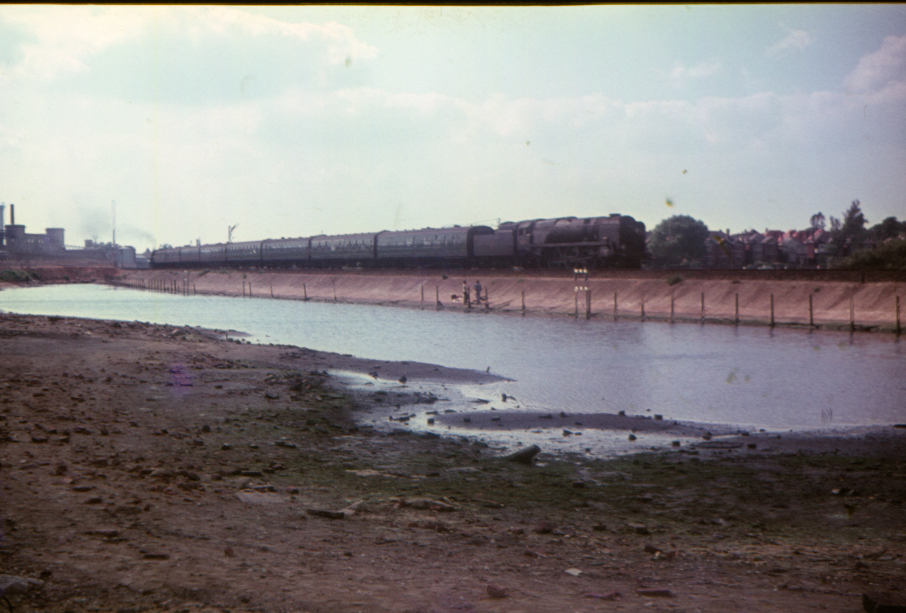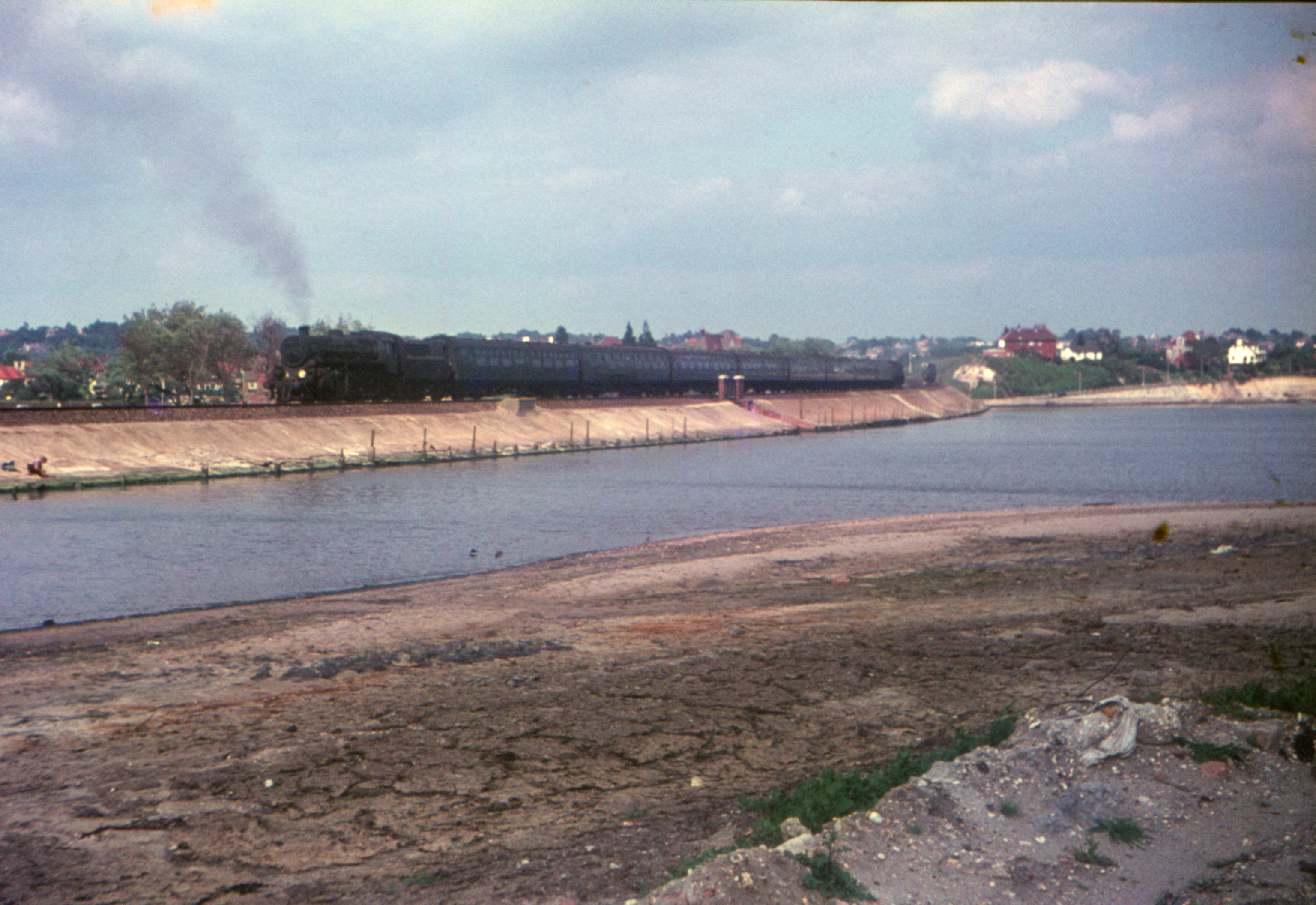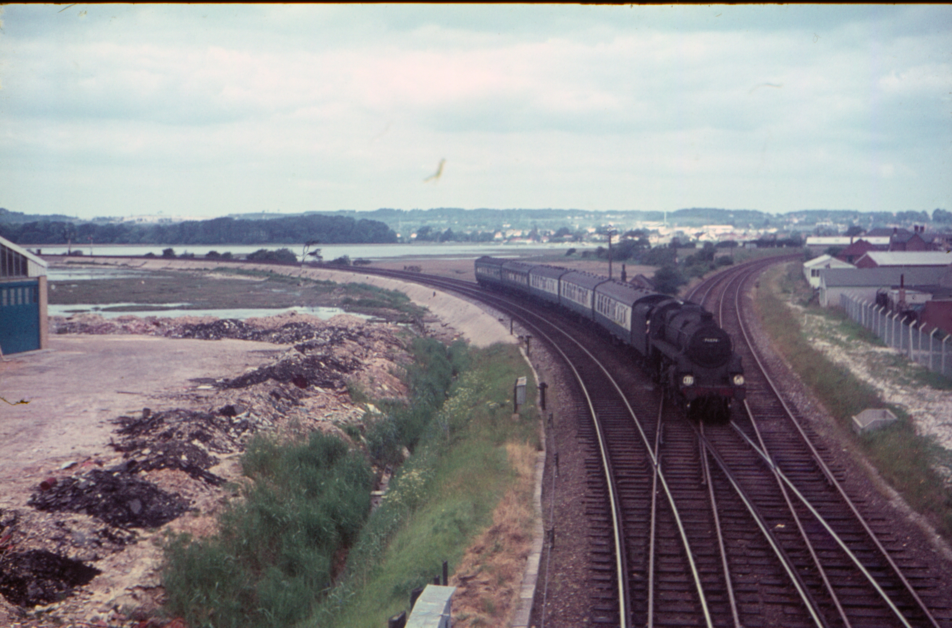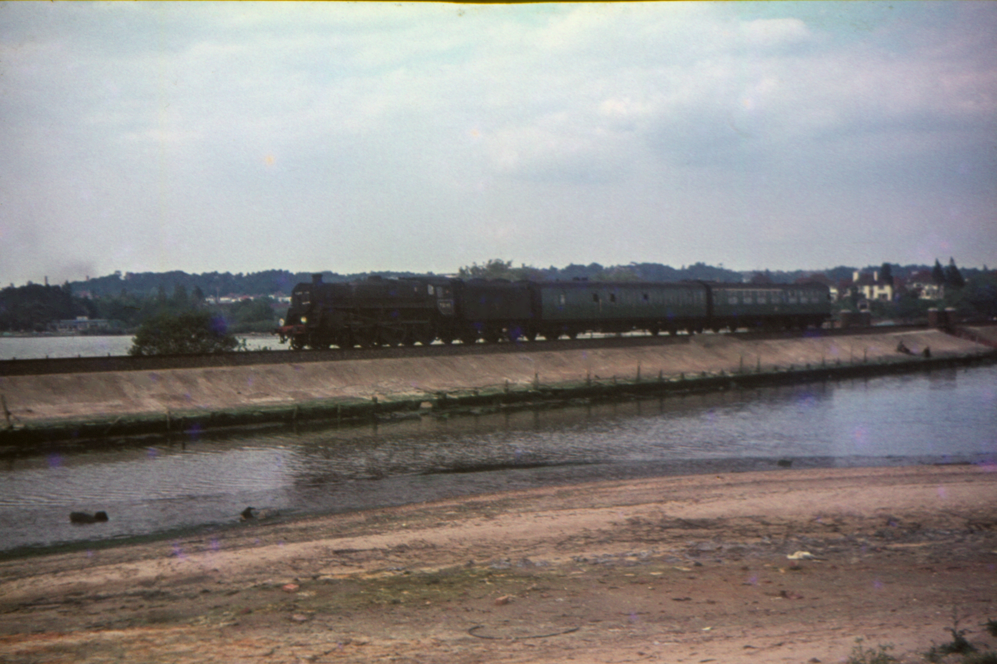 BR Standard 4-6-0 5MT 73093 1647 Weymouth to Bournemouth local passenger at Holes Bay, Poole