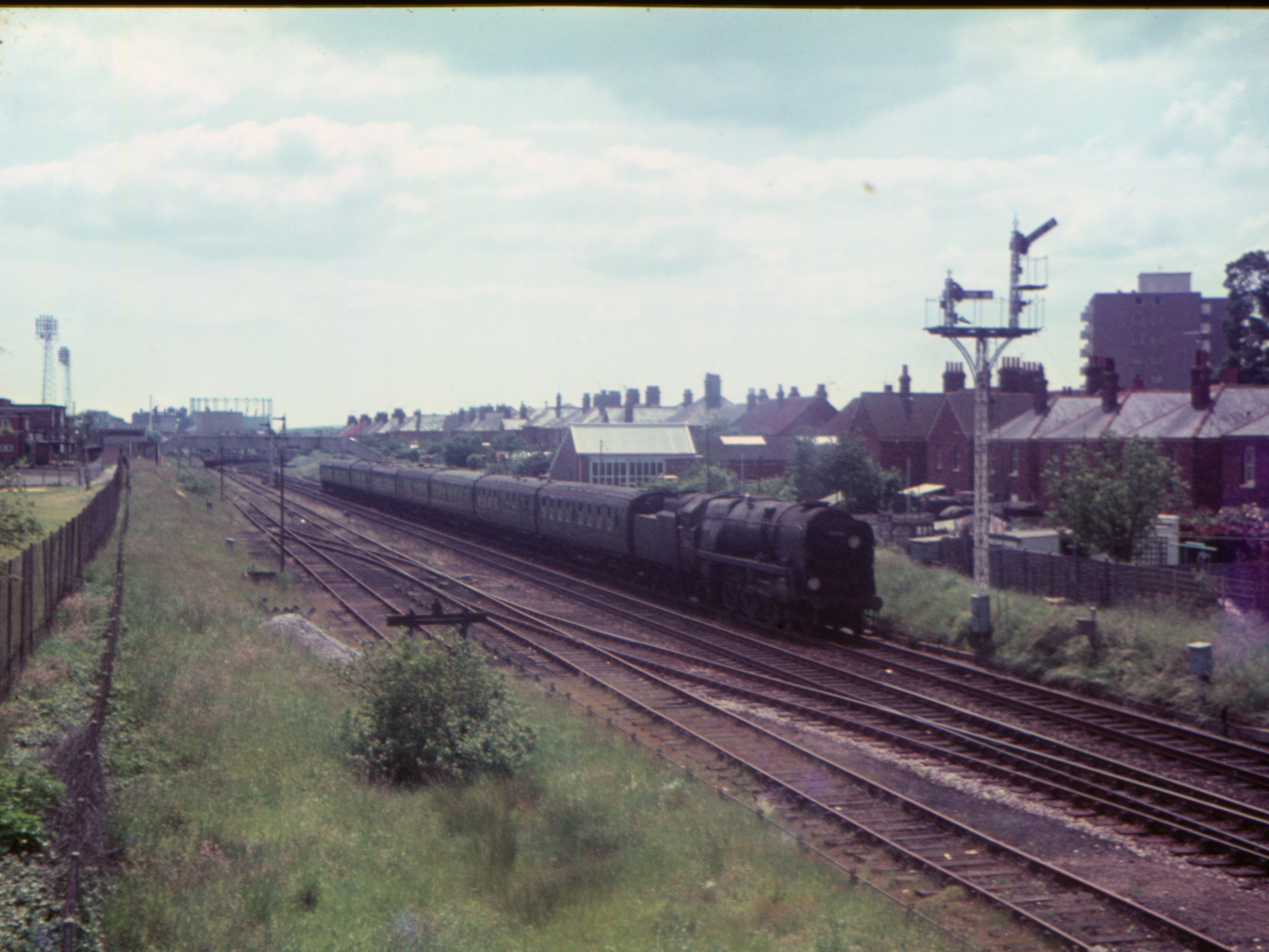 BR Standard 4-6-0 4MT 75074 1210 Weymouth to Bournemouth Central local passenger passing Holes Bay Junction near Poole