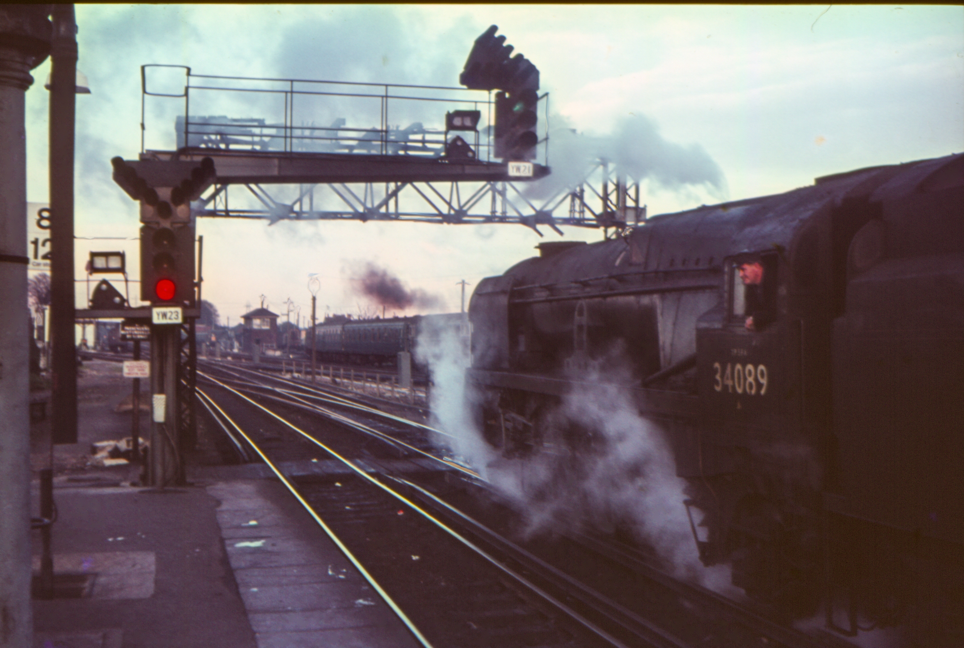 Bulleid Rebuilt West Country 4-6-2 7P6F 34089 "602 Squadron" Waiting to depart with 1550 Weymouth to London (Waterloo) express passenger 27th March 1967