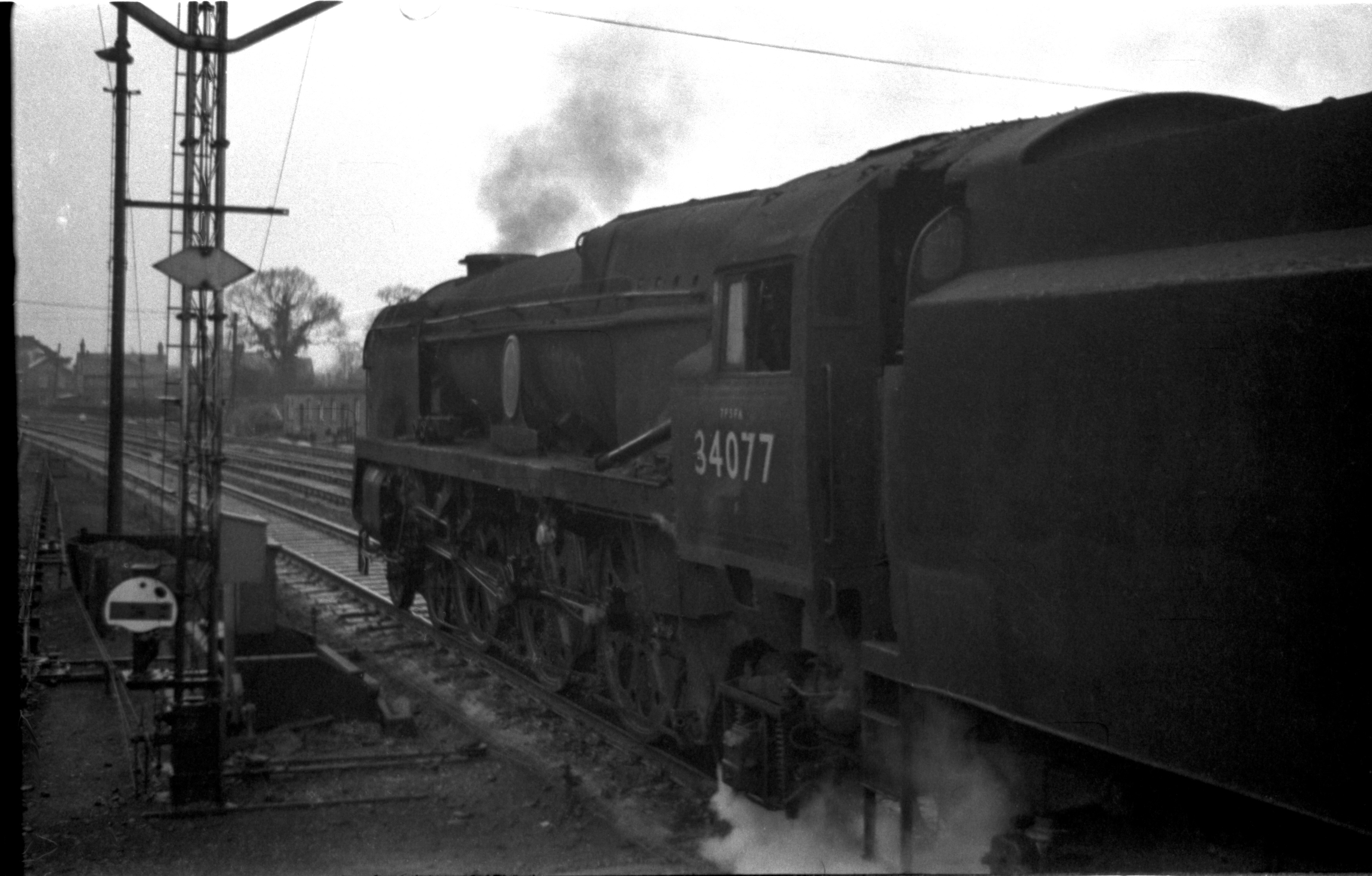 Rebuilt Bulleid Battle of Britain 4-6-2 7P6F 34077 "603 Squadron" 0835 Waterloo to Bournemouth 5th Feb.1966