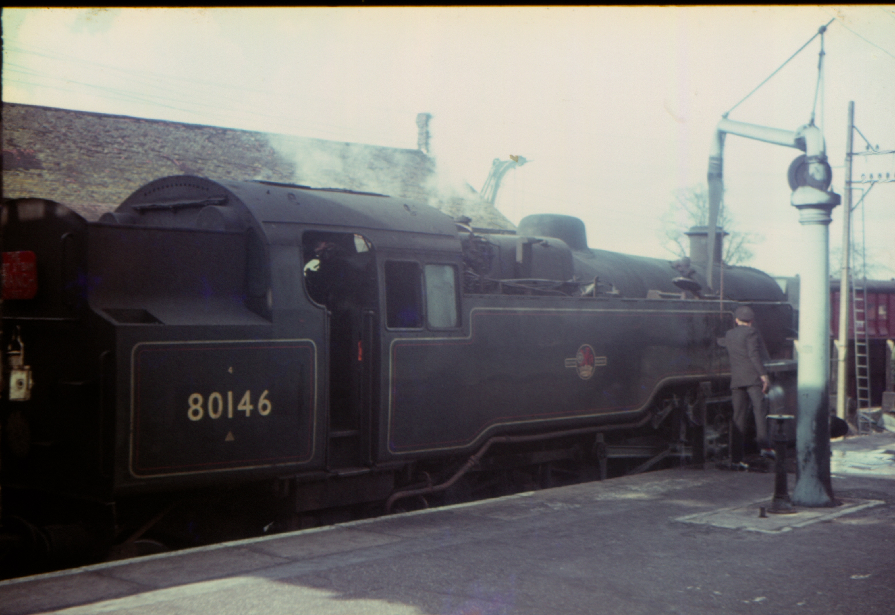 BR Standard 2-6-4T 4MT 80146 Taking water after arriving with 1618 local passenger from Lymington Pier 29th March 1967