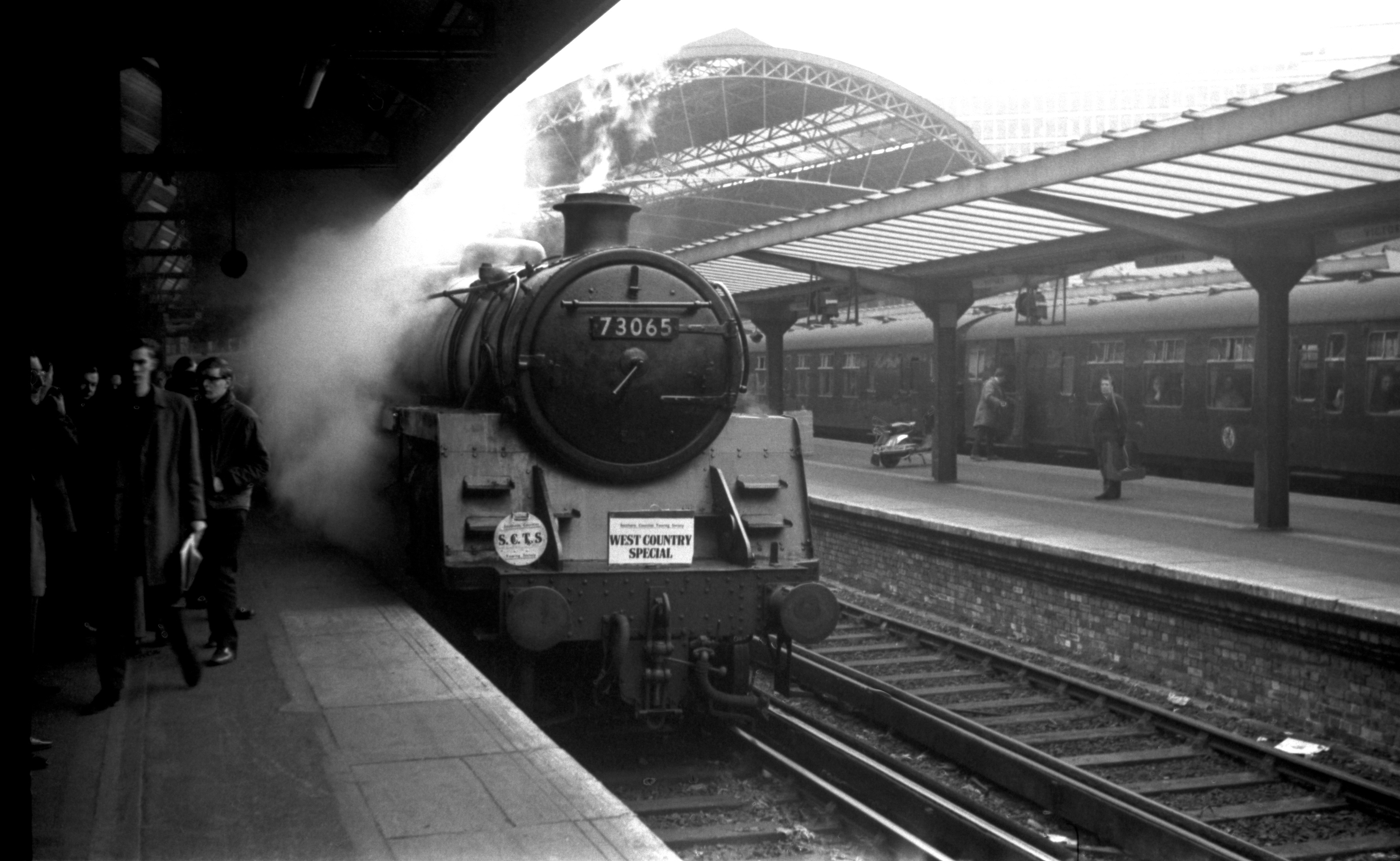 BR Standard 4-6-0 5MT 73065 Awaiting departure with West Country Special London (Victoria) to Exeter Central 13th Nov.1966